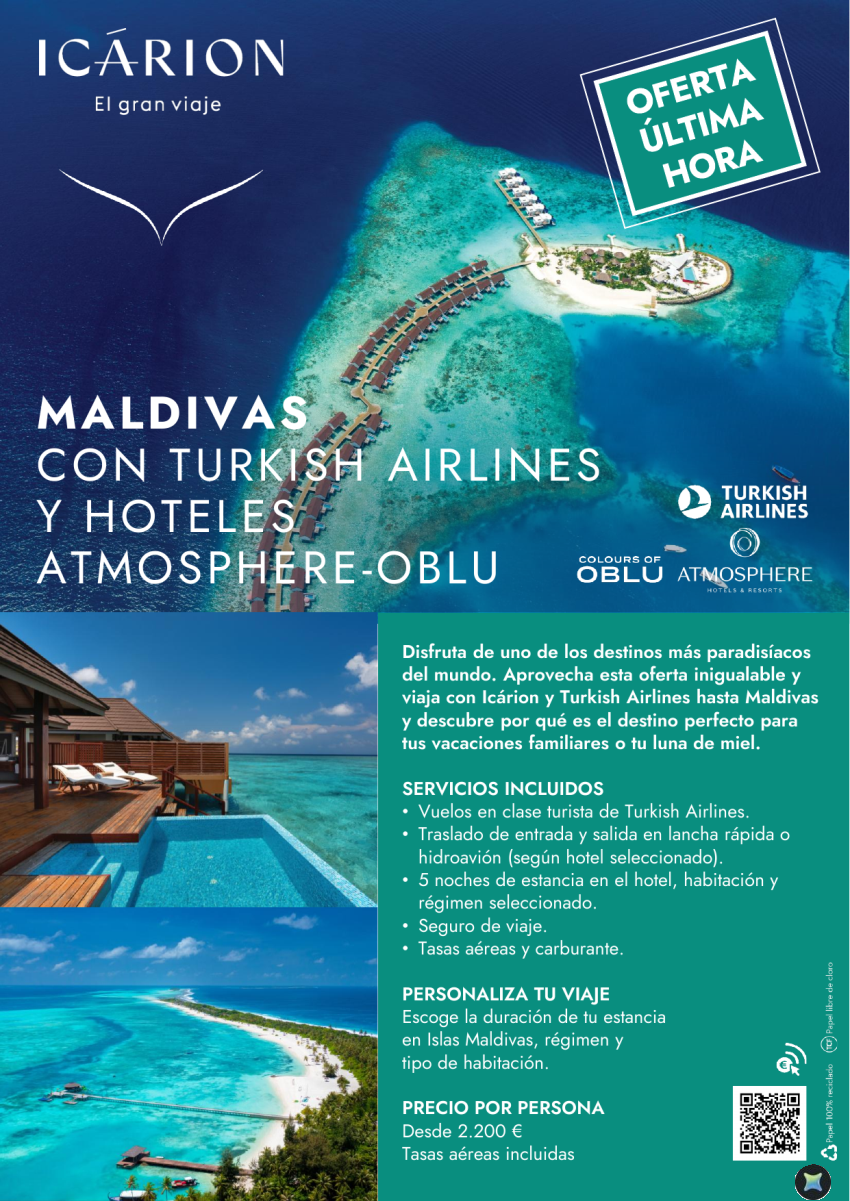 Maldivas con Turkish Airlines y Hoteles Atmosphere-Oblu. Oferta última hora