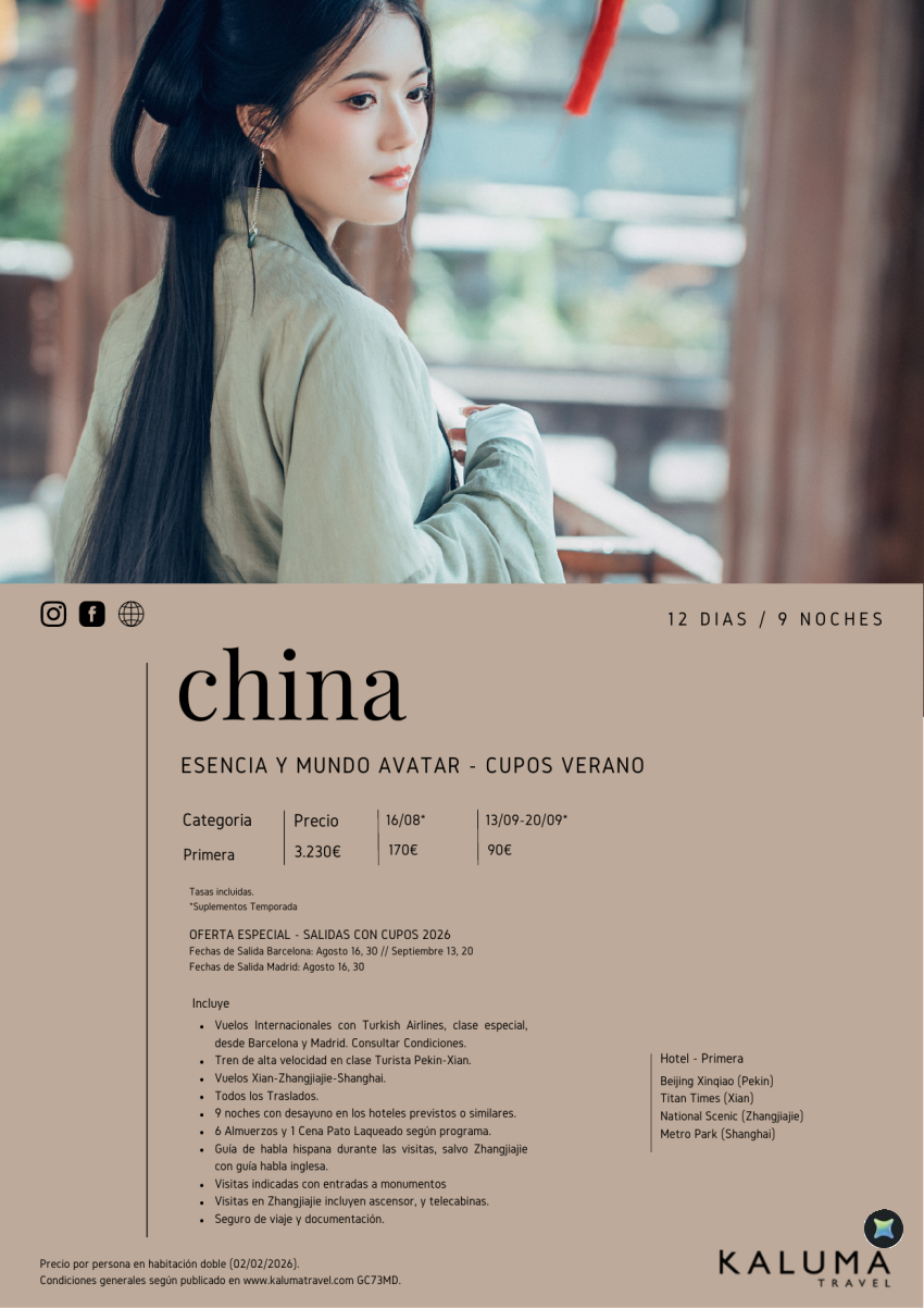 Esencia de China y Mundo Avatar - Salidas Especiales con Cupos Verano desde 3.230 €